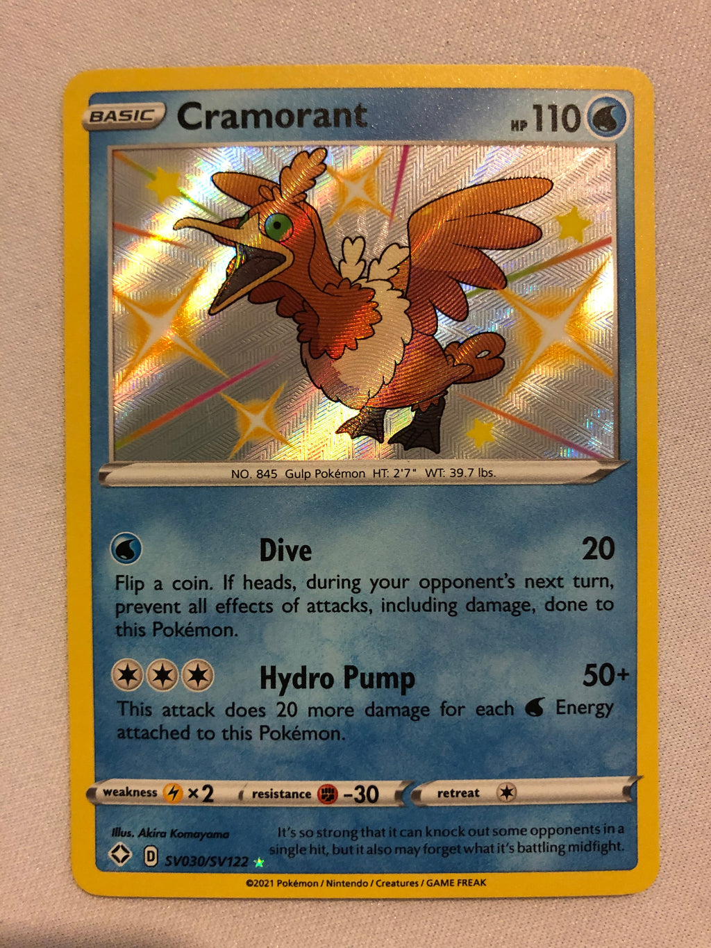 Cramorant SV030/SV122 Shiny Holo Rare Shining Fates Pokemon Card Near Mint
