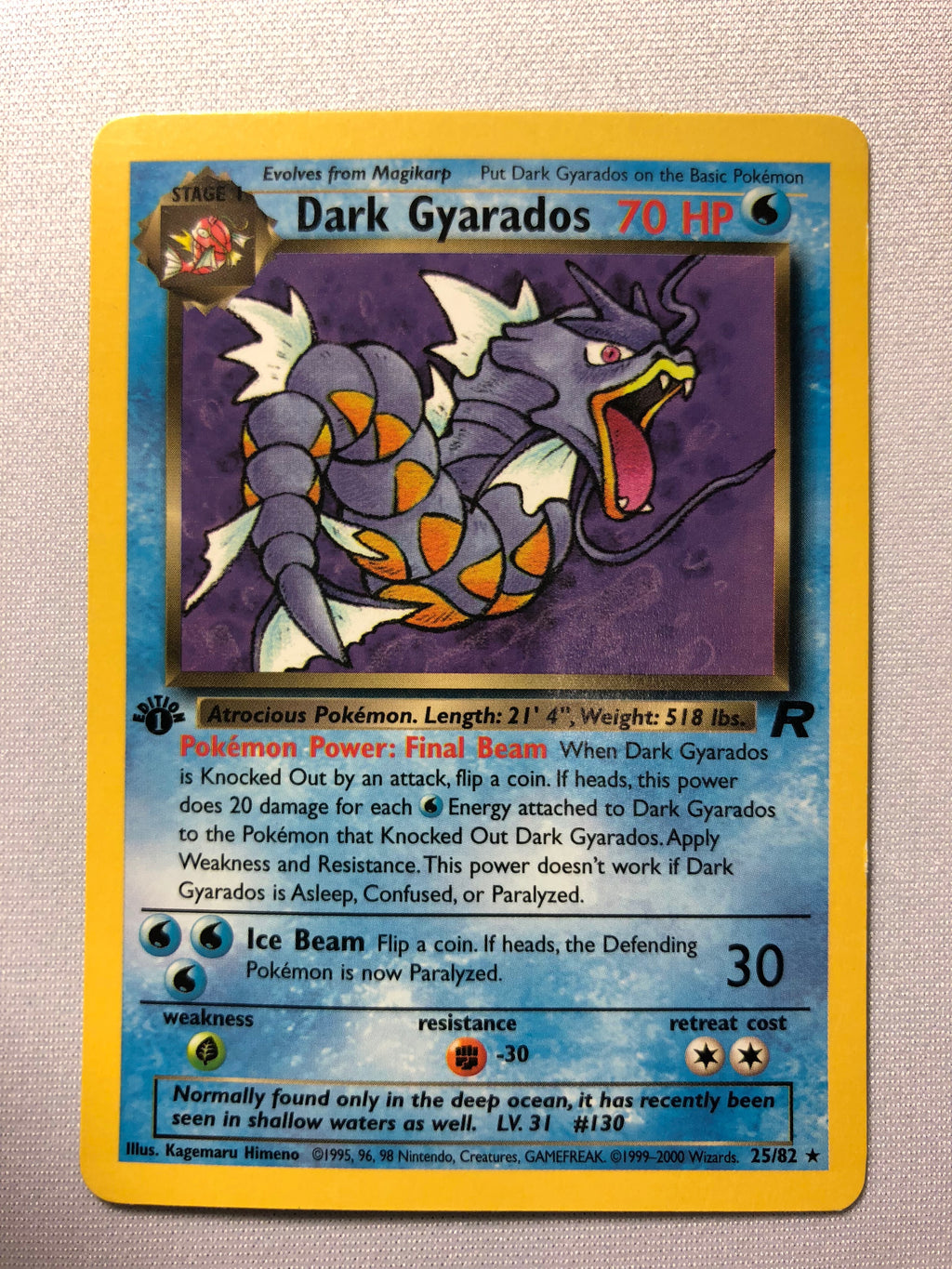 Dark Gyarados 25/82 Team Rocket 1st Edition Rare Pokemon Card Near Mint