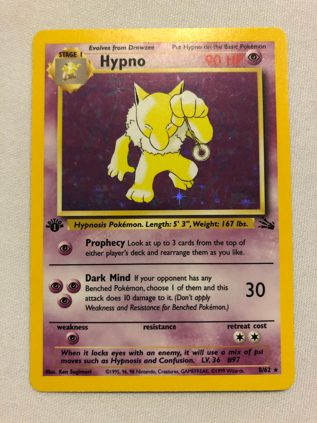Hypno 8/62 Fossil Set Holo Rare 1st Edition Pokemon Card Near Mint