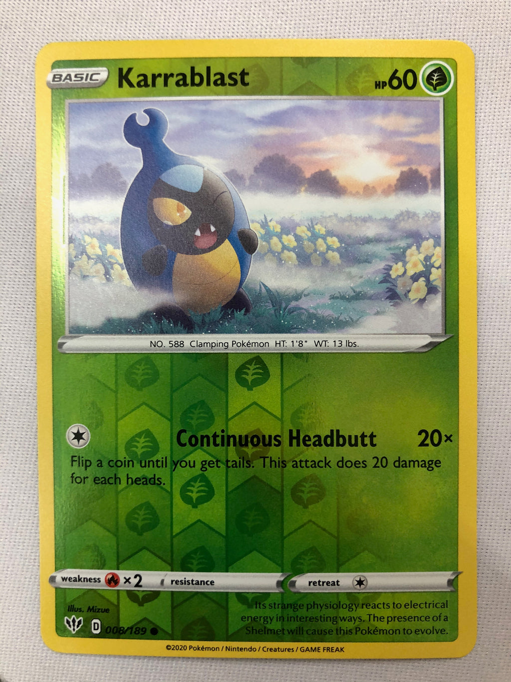 Karrablast 8/189 Darkness Ablaze Reverse Holo Common Pokemon Card NM