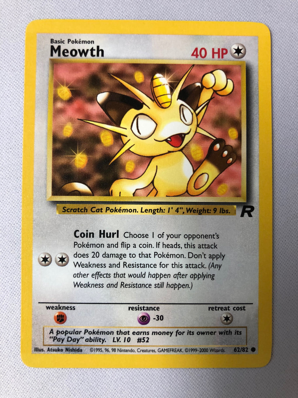 Meowth 62/82 Team Rocket Common Pokemon Card NM