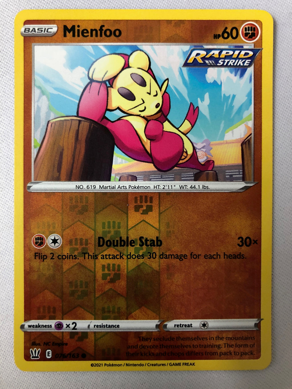 Mienfoo 076/163 Battle Styles Reverse Holo Pokemon Card MINT