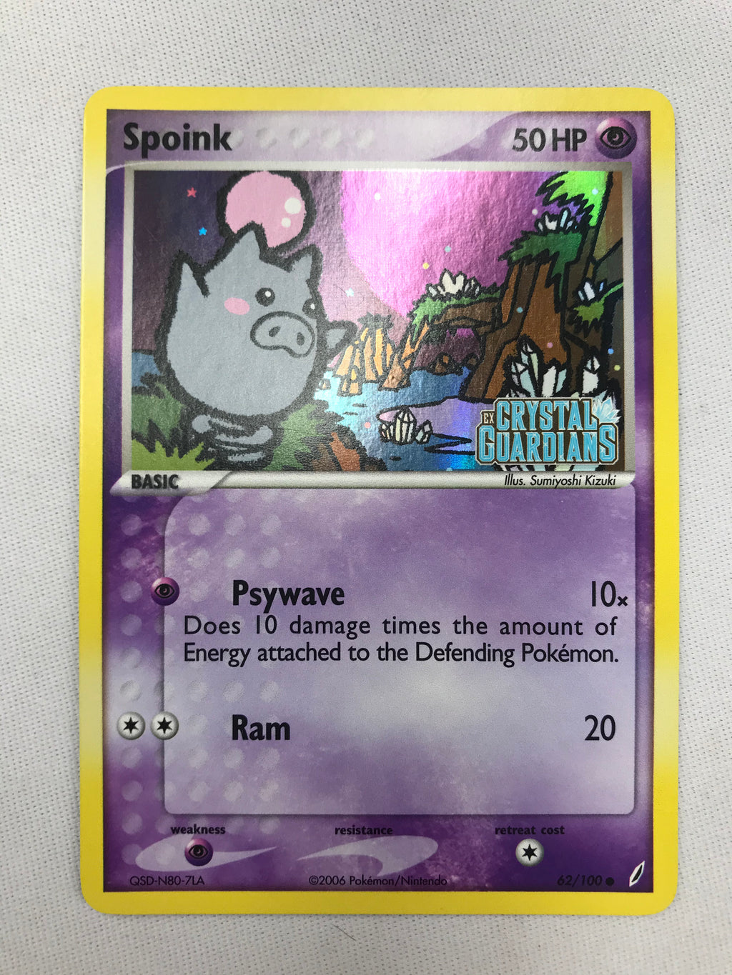 Spoink 62/100 EX Crystal Guardians Holo Stamped Pokemon Card Near Mint