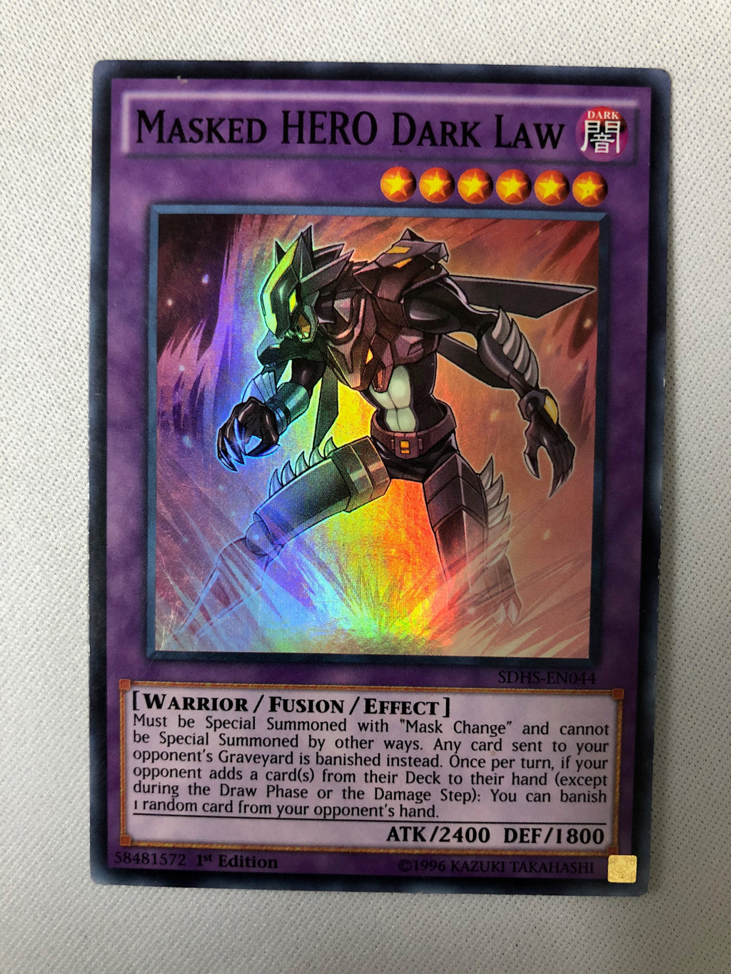 Yugioh Masked Hero Dark Law SDHS-EN044 1st Edition Super Rare NM